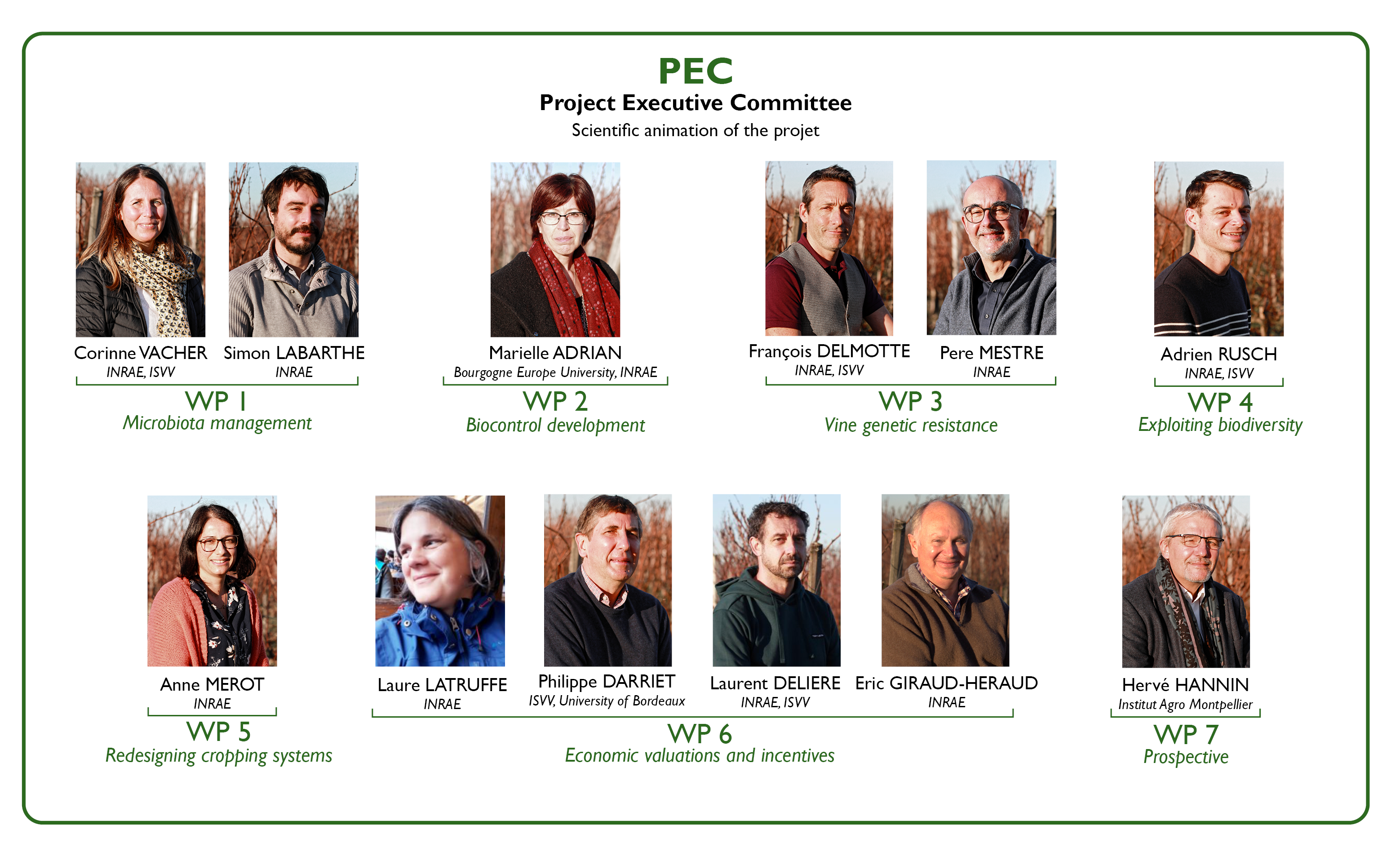 - Laurent Delière, ingénieur (INRAE Bordeaux - UMR Santé et Agroécologie du Vignoble (SAVE) pour l'axe Valorisations économiques et incitations